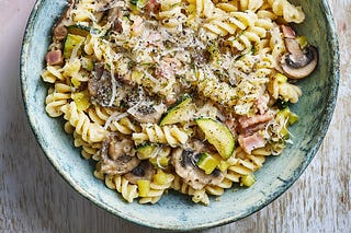 Crispy bacon, soft veg and a silky crème fraîche sauce. Ready in 20 minutes.