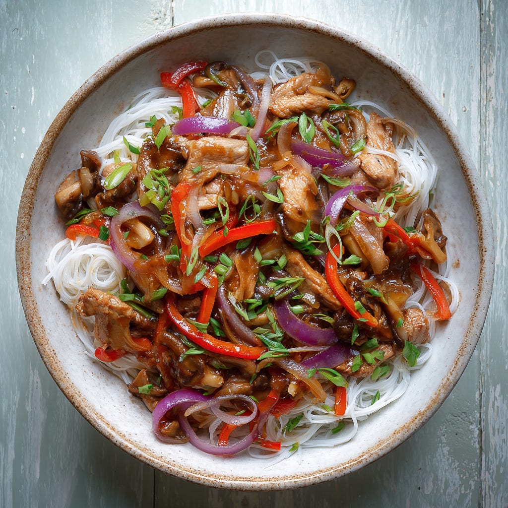 I make this when I want something quick but not boring. The pork cooks fast, the mushrooms add a bit of depth, and the sauce has that nice mix of tangy and spicy without being over the top. It’s light but filling, and the rice noodles make it feel like proper dinner without the faff.